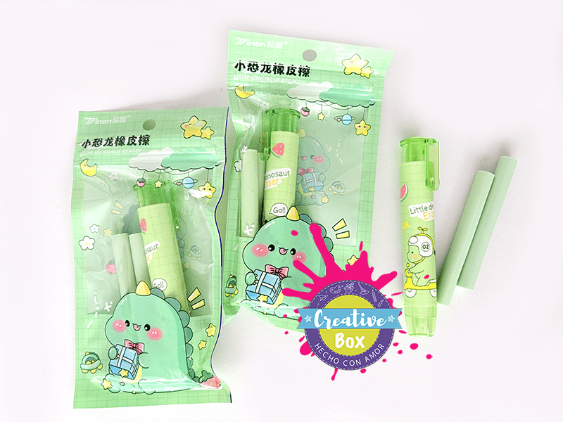 + 1 Borrador retráctil diseño dinosaurios, con barra de repuesto.