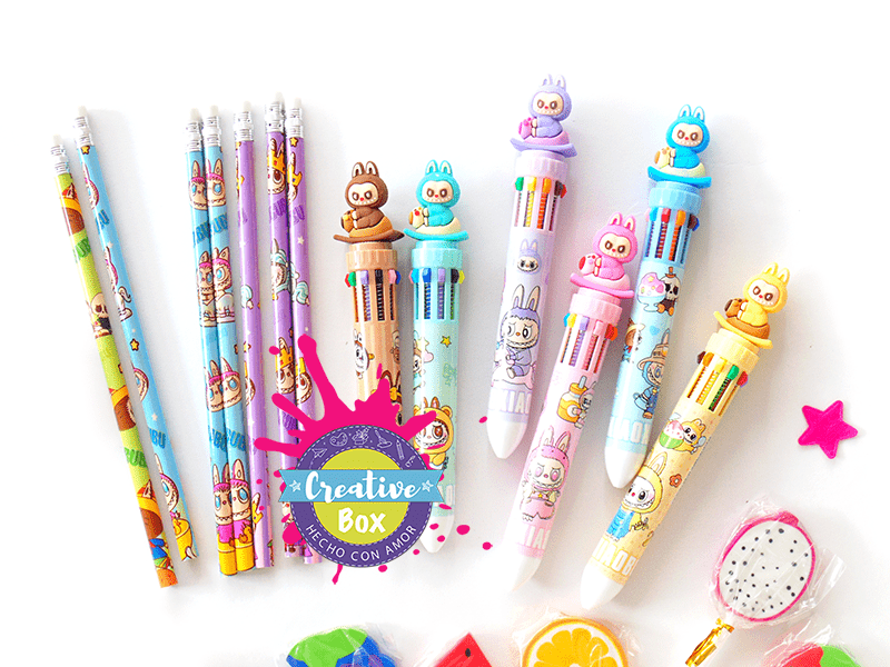 + 1 Bolígrafo 10 minas de colores intercambiables con diseños de Labubu. Colores surtidos.